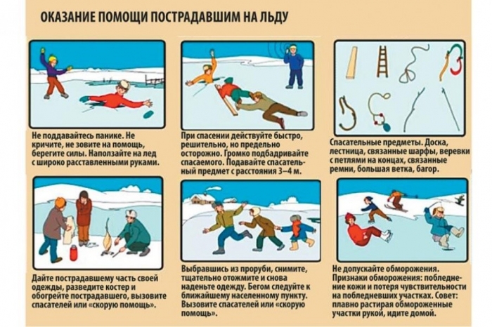- широко раскинуть руки в стороны и постараться зацепиться за кромку льда, чтобы не погрузиться с головой;
