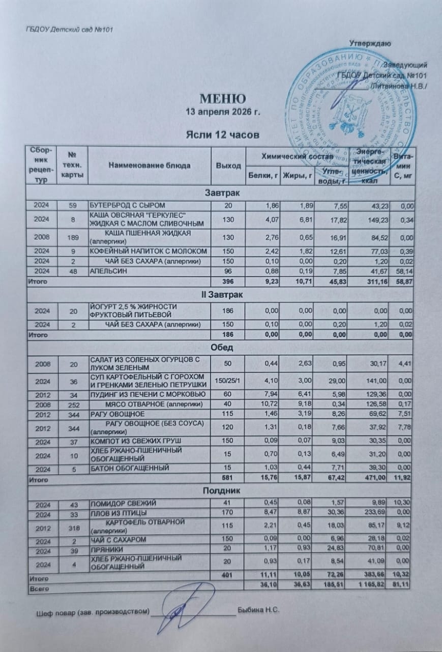 Новое цикличное десятидневное меню - 2026г. (ясли) Открыть | Скачать (pdf, 2162.4 Кб) |