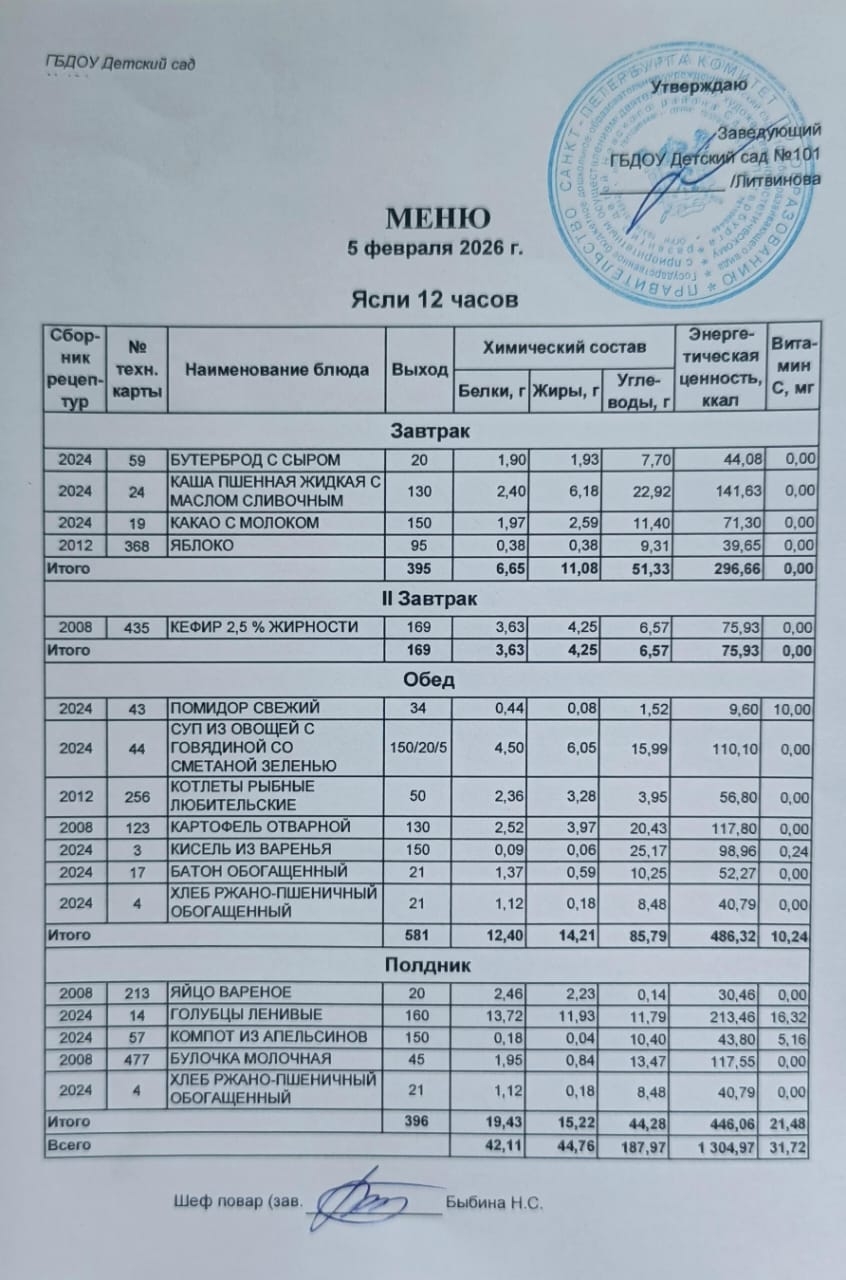 Новое цикличное десятидневное меню - 2026г. (ясли) Открыть | Скачать (pdf, 2168.8 Кб) |