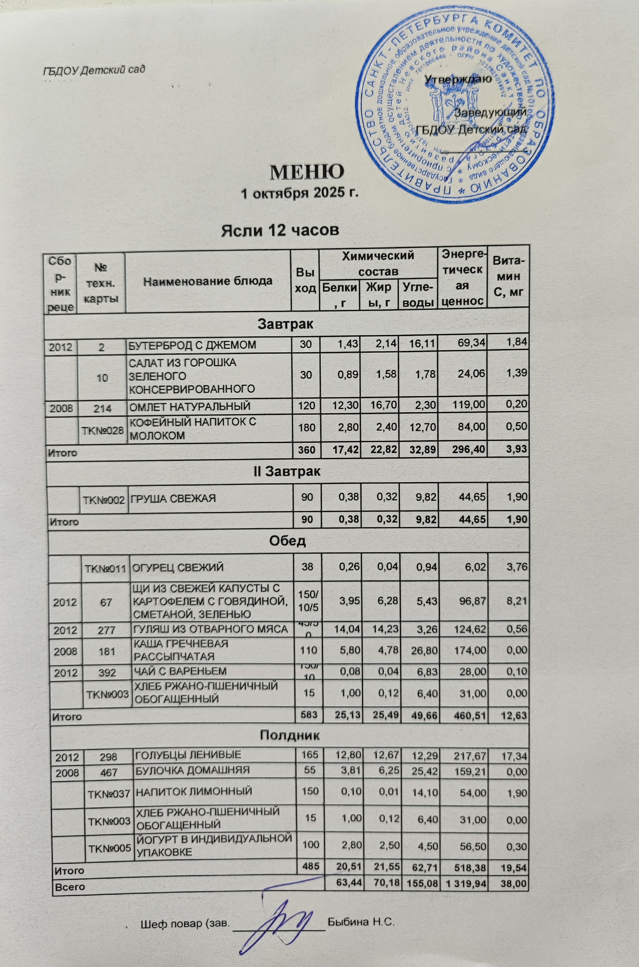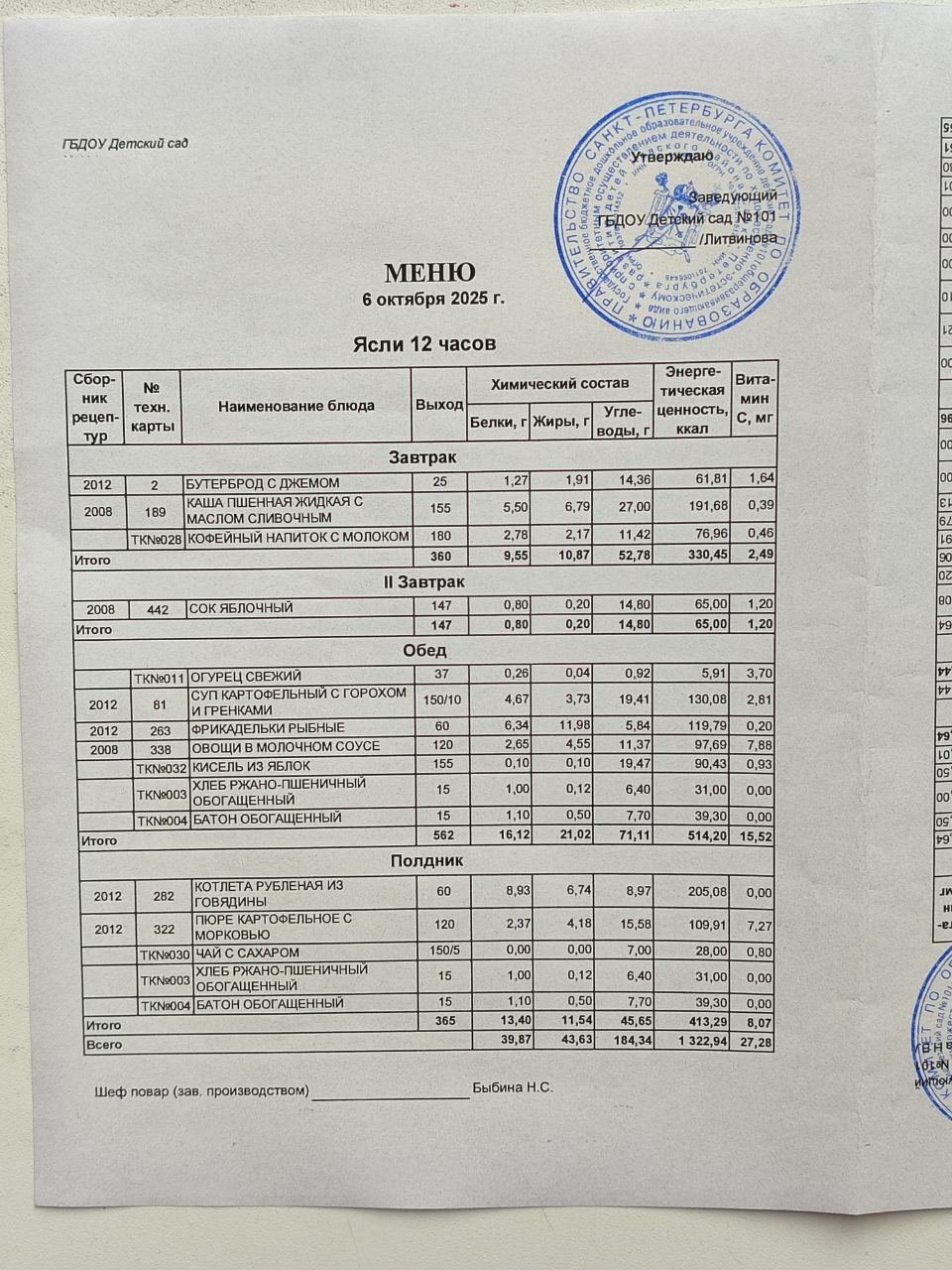 Фото двухнедельного меню рационов горячего питания для детей от 1 года до 3 лет можно посмотреть