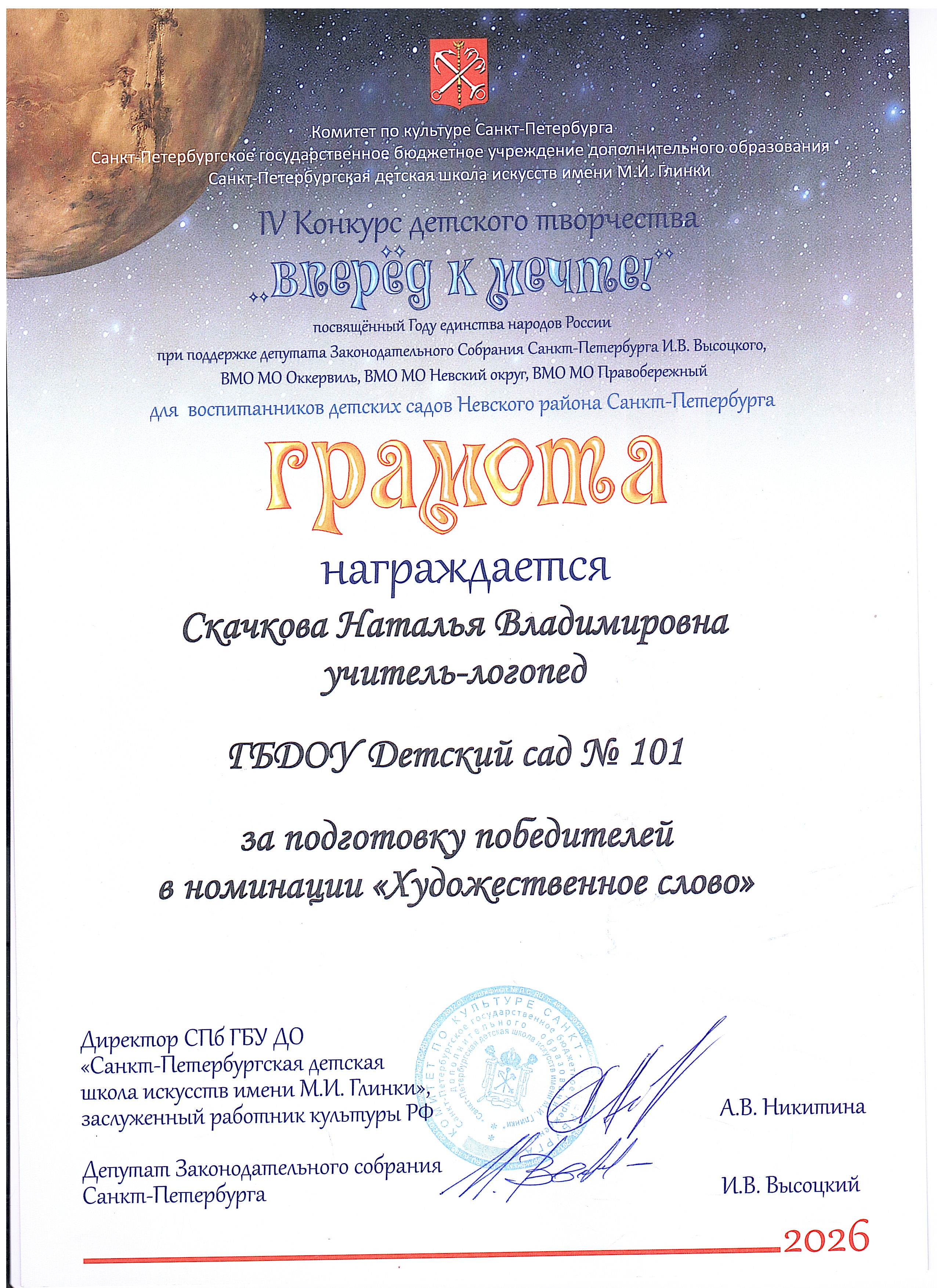 ГРАМОТА ЗА ПОДГОТОВКУ ПОБЕДИТЕЛЕЙ В НОМИНАЦИИ "ХУДОЖЕСТВЕННОЕ СЛОВО" Открыть | Скачать (jpg, 2105.7 Кб) |