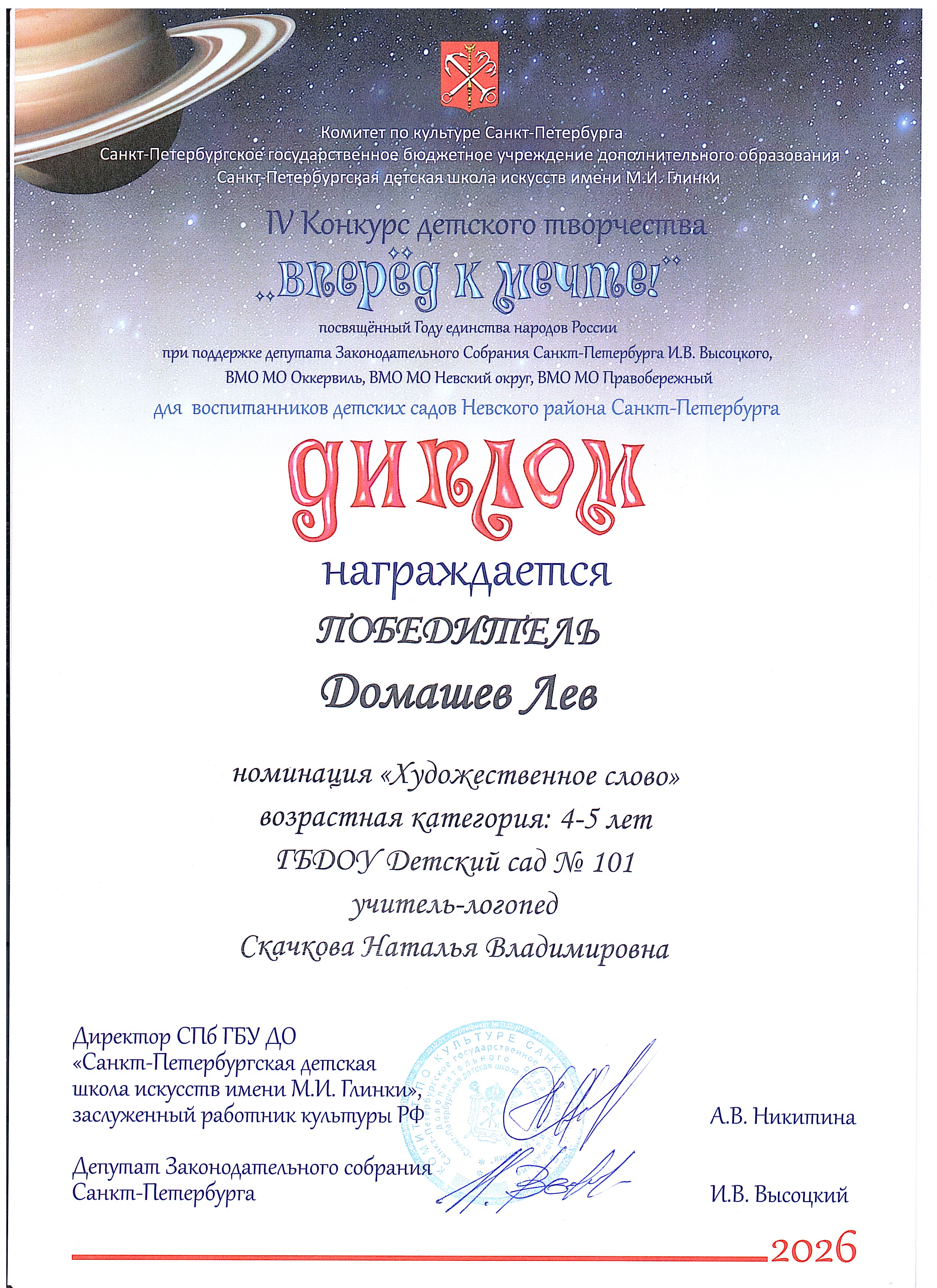 ДИПЛОМ ПОБЕДИТЕЛЯ_ДОМАШЕВ ЛЕВ_НОМИНАЦИЯ "ХУДОЖЕСТВЕННОЕ СЛОВО" Открыть | Скачать (jpg, 2124.3 Кб) |